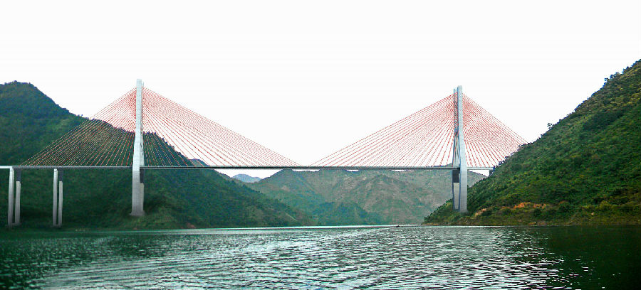 黔南布依族苗族自治州罗甸县与广西壮族自治区河池市天峨县的交界处,跨越红水河的高速公路斜拉桥,是银百高速公路G69惠水至罗甸段(惠罗高速)的控制性工程,大桥2013年12月开工,整个工程预计在2016年10月完工,建成后贵阳至龙邦口岸距离将缩短至400公里,是贵州面向东盟最便捷的出境通道,对促进当地的经济发展将起到积极推动作用。