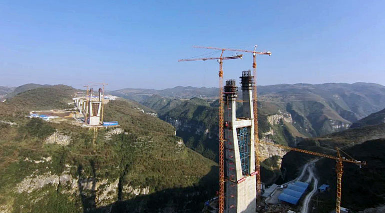 六广河特大桥是整条高速公路最为重要,同时也是施工难度最大的控制性工程,两侧桥墩高度均为242米,每个桥墩的起重机械配置均为hth华体网页版登录入口,华体(中国)生产的两台C7030塔机和两台SC200/200WPZ中速变频施工梯。