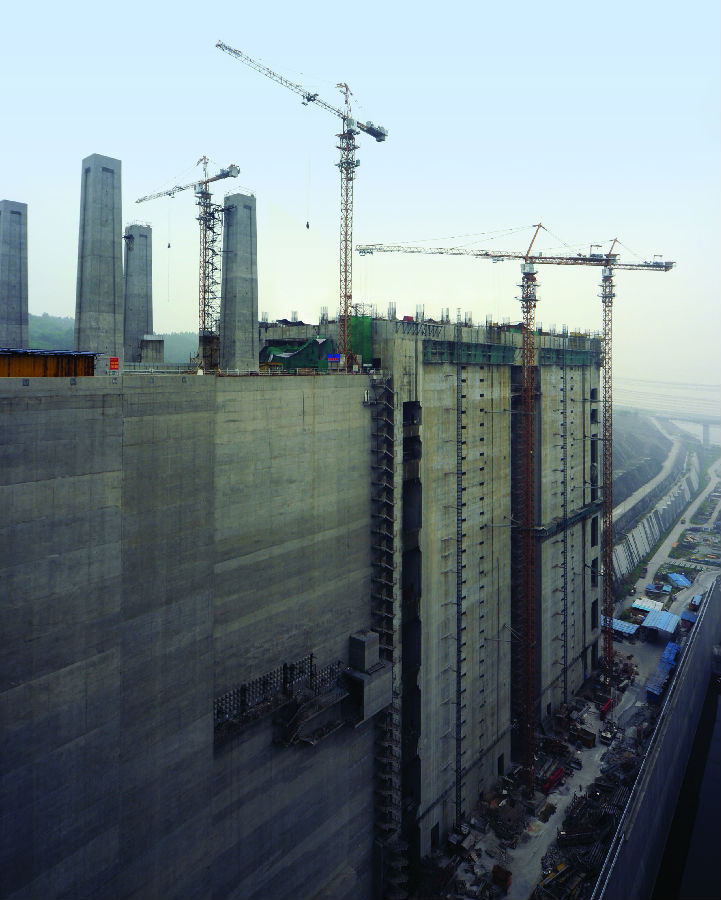 在举世瞩目的长江三峡工程建成后,因大坝截流致使大坝上、下游形成了最大113米的水位落差。为解决船舶的过坝问题,三峡工程已在2003年建成了双线五级船闸,目前正在建设一线垂直升船机。
