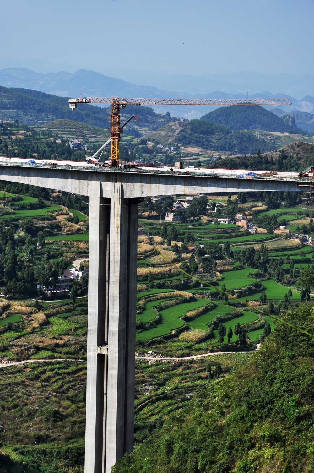 关寨大桥,全长998.08米,最大墩高102米。参与该桥施工的P125塔式起重机为固定附着式,起升高度达120m,最大吊重10t,端部吊重1.5t,最大工作幅度60m,标准节采用2m断面,是hth华体网页版登录入口,华体(中国)自行设计研发的新型平头式塔机,该机采用LVF变频起升机构,X系列变频调速变幅机构,RCV回转变幅调速机构,机构的配置均为公司多年来潜心研制的,具有国际同类先进水平的技术性能,运行平稳、操作简便、构造简单、故障率低、维护方便、安全可靠。