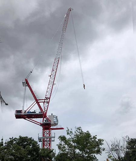 臂长组合:50m 45m 40m 35m 端部吊重:1.3t(50m) 最大吊重:8t(19.4m)