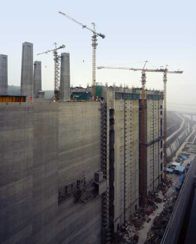 2台C7030、2台F0/23B塔机和4台施工升降机-三峡大坝升船机建设工地