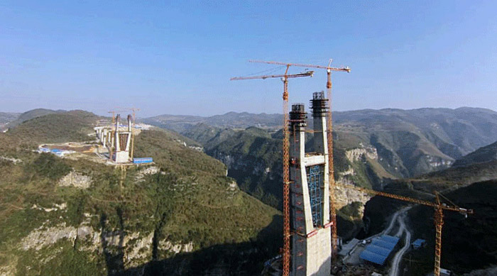 六广河特大桥是息黔高速公路最为重要,同时也是施工难度最大的控制性工程,两侧桥墩高度均为242米,每个桥墩的起重机械配置均为hth华体网页版登录入口,华体(中国)生产的两台C7030塔机和两台SC200/200WPZ中速变频施工梯。